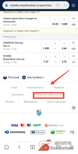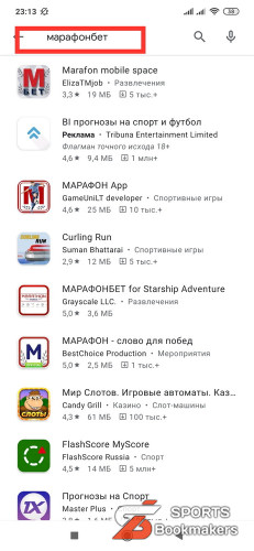 Приложение Марафонбет на Андроид