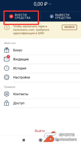 3. Нажмите на вкладку «внести средства»;