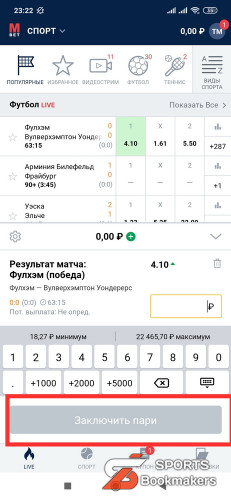 4. Введите сумму и нажмите на кнопку «Заключить пари».