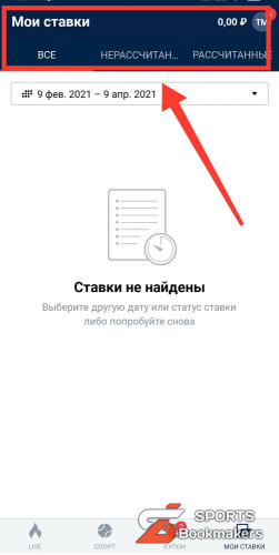 Сделать ставку вы можете в живом либо доматчевом формате. Разделы расположены на верхней шторке главной страницы сайта во вкладке «Спорт». Для заключения пари воспользуйтесь инструкцией выше. Игровой билет появится в нижней части экрана. Обратите внимание, что прибыль рассчитывается автоматически, как только вы указываете сумму и коэффициент для дальнейшей игры.
